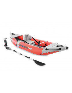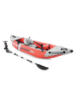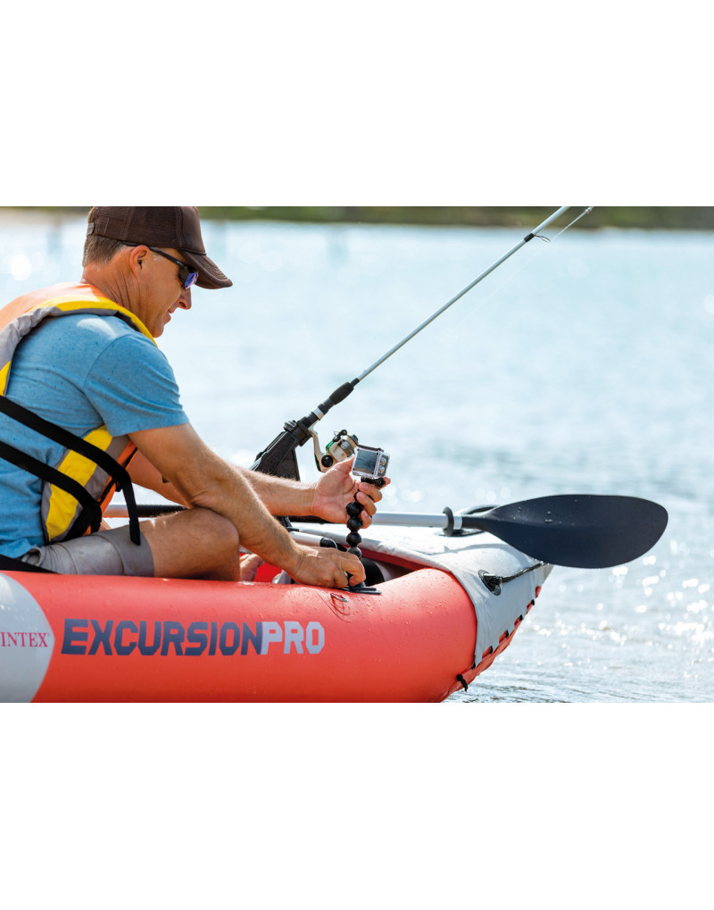 Having the right kayak to support you on your day in the water can make a huge difference in the quality of your experience. That's why the Intex Excursion™ Pro Kayak is made with features like adjustable seats or built-in footrests to keep you comfortable. Not only that, it's also made with fishing rod holders on each side for hands-free fishing. There's also a waterproof bag you can latch into the front for anything you need to carry out onto the water with you. Since it's inflatable, it's easy to stow away on a car or in the back of a truck. Even when it is inflated, handles on the front and back give you an easy way to carry it over land or onto a beach. Packaged with a pair of aluminum oars and an air pump, the Intex Excursion™ Pro Kayak has everything you need to start enjoying your day on the lake, river, or ocean.