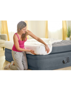 Sus invitados apreciarán la lujosa comodidad que brinda este colchón de aire Ultra Comfort Elevated. La construcción interior Fiber-Tech ofrece una estabilidad superior y una durabilidad excepcional. El suave sistema de doble aire de la parte superior de la almohada proporciona una superficie suave para dormir, lo que garantiza una noche de sueño reparador. La construcción de doble capa le permite meter sábanas de tamaño estándar de manera fácil y segura. Para mayor comodidad, la potente bomba interna infla y desinfla fácilmente el colchón de aire en cuestión de minutos.