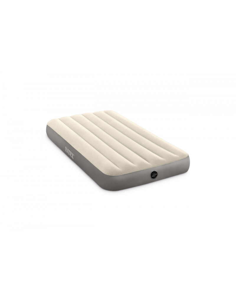 La superficie para dormir está cubierta con un suave flocado de calidad comprobada y los costados tienen un fondo de vinilo para mayor comodidad. Una válvula 2 en 1 con aberturas extra anchas garantiza un inflado y desinflado rápido. Tamaño aproximado inflado 39in x 75in x 10in. Capacidad de peso 300 libras.