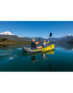 El kayak Intex Explorer™ K2 es deportivo y divertido con un diseño aerodinámico para remar con facilidad. El color amarillo brillante y los gráficos deportivos hacen que el kayak sea muy visible en el agua. Ideal para experimentar lagos y ríos templados con un amigo, este kayak de la serie Sports es perfecto para dos adultos. Ligero y compacto, este kayak es muy fácil de armar y le permite llevar la diversión del kayak donde quiera que vaya. Fabricado con una construcción de vinilo resistente, este robusto kayak tiene un piso inflable con vigas en I para mayor comodidad y rigidez. Un skeg extraíble proporciona estabilidad direccional, mientras que se incluyen dos asientos inflables ajustables con respaldo para mayor comodidad. Inflar o desinflar rápidamente es muy fácil con una válvula Boston en cada lado. Para su comodidad, se proporciona una línea de agarre y una manija de agarre en cada extremo, así como también la identificación de la Guardia Costera de EE.UU., y un kit de reparación de parches. El kayak Explorer™ K2 ofrece accesorios adicionales que incluyen: dos remos de aluminio de 86 pulgadas y una bomba Intex de alto rendimiento para inflar y desinflar fácilmente.