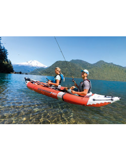 Tener el kayak adecuado para ayudarte en tu día en el agua puede marcar una gran diferencia en la calidad de tu experiencia. Es por eso que el Intex Excursion™ Pro Kayak está hecho con características como asientos ajustables o reposapiés integrados para mantenerte cómodo. No solo eso, también está hecho con soportes para cañas de pescar en cada lado para pescar con las manos libres. También hay una bolsa impermeable que puedes enganchar en la parte delantera para cualquier cosa que necesites llevar contigo al agua. Como es inflable, es fácil guardarlo en un automóvil o en la parte trasera de un camión. Incluso cuando está inflado, las asas en la parte delantera y trasera le brindan una manera fácil de transportarlo por tierra o en la playa. Empaquetado con un par de remos de aluminio y una bomba de aire, el Intex Excursion™ Pro Kayak tiene todo lo que necesita para comenzar a disfrutar de su día en el lago, el río o el océano.